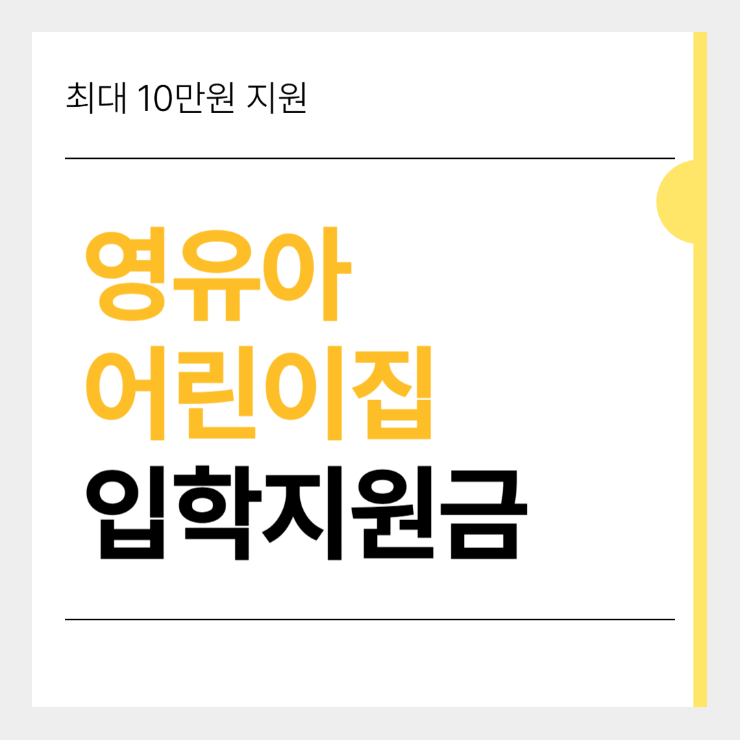 - 지원 내용: 어린이집 신입생 입학준비금으로 1인당 10만 원을 최초 1회 지급.